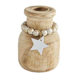 Paulownia wood vase with foiled beads and paper Mache pendant accent.